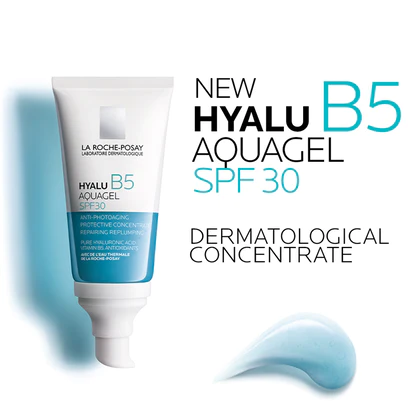 To begin with, thoroughly cleanse your skin and pat it dry. The following step is to apply La Roche-Posay Hyalu B5 Aquagel SPF30, massaging it onto the skin of the face, starting from the center and working the product outwards.
