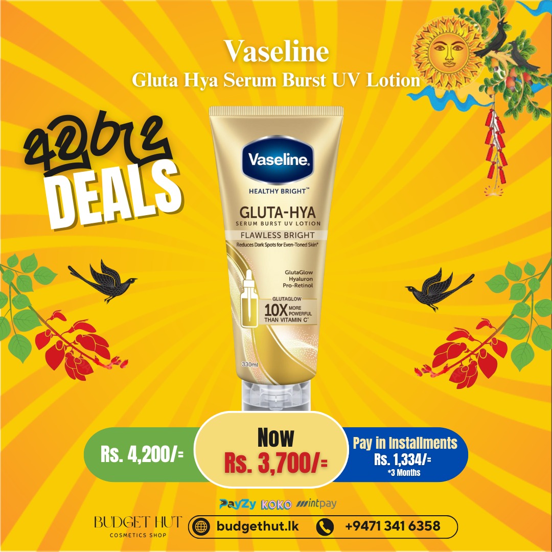 Vaseline Healthy Bright Gluta Hya Serum Burst UV Lotion Flawless Glow 330ml - Budget Hut